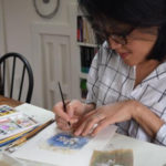 Ruby Silvious is a visual artist and graphic designer, whose recent work includes experimenting on recycled and found materials. On January 3, 2015, she started a project called 363 Days of Tea, a visual daily record of her impression of the moment, using the emptied-out tea bag as her canvas, and altering it to create a new work of art every day for 363 days. She draws, paints, prints and collages moody, evocative and sometimes whimsical art on used teabag paper. She is the author of a newly published coffee table book, 363 Days of Tea: A Visual Journal on Used Teabags (Mascot Books). Silvious was educated in the U.S., Europe and Asia; she currently lives in Coxsackie, New York. Her art is exhibited internationally, and is featured in public and private collections.